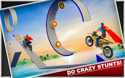 have realistic hard acrobatics wheeler bike stunts experience in superhero tricky motorcycle simulator games 2018.